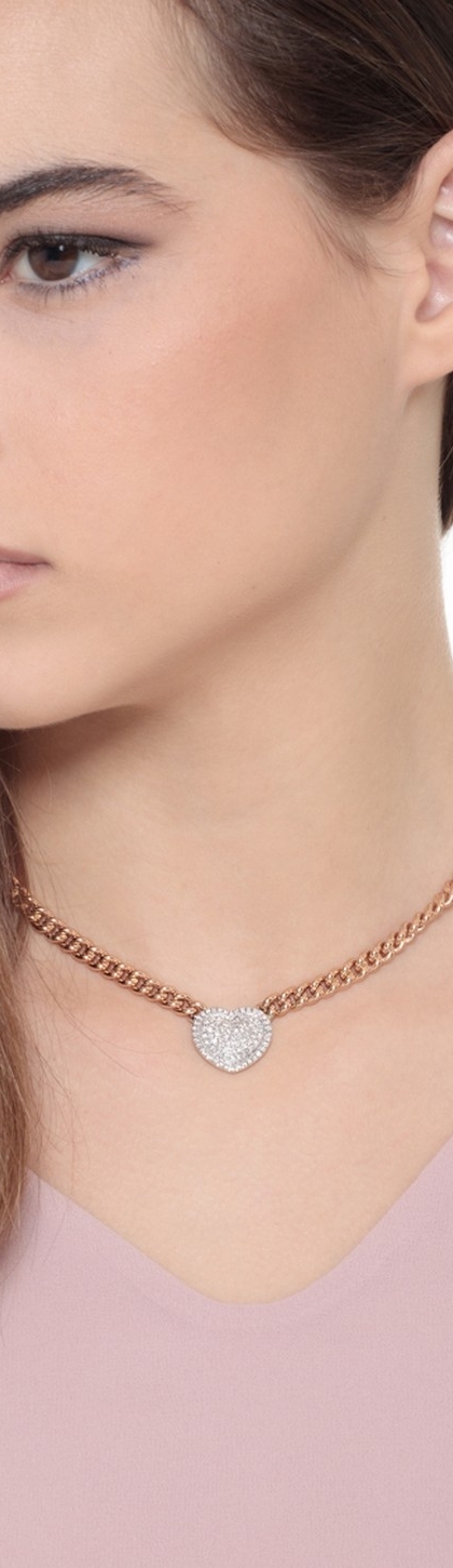 Halskette aus 18 Karat Roségold mit einem Herzanhänger aus Weißgold und Diamanten