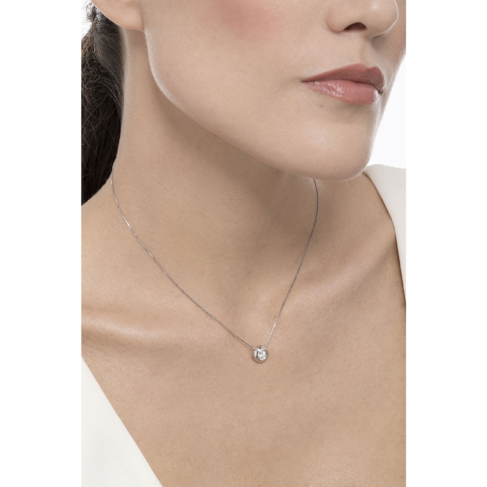 Damenkette aus Weißgold Anhänger mit rundem Diamanten