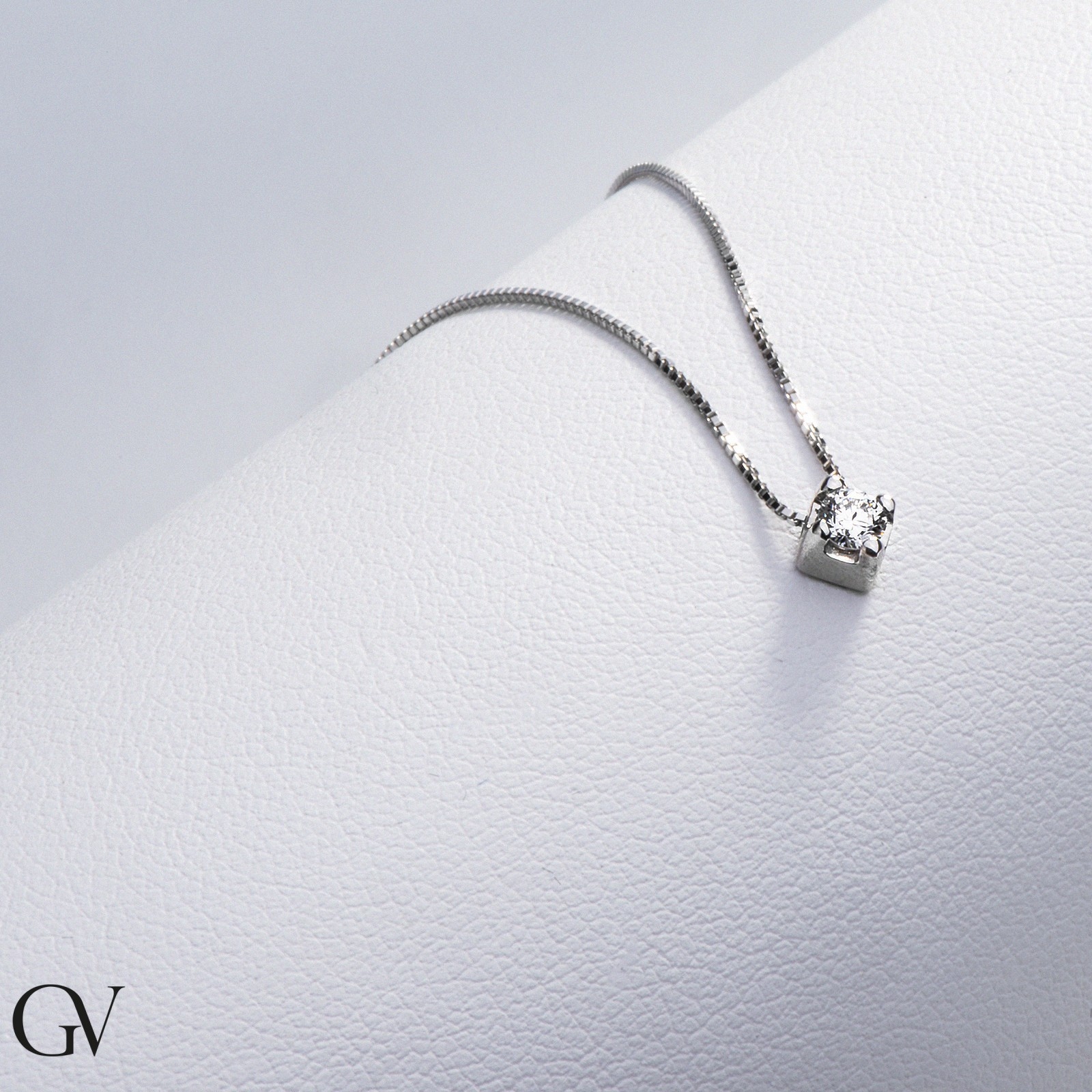 Rhodinierte 18K Weißgold-Halskette mit Solitär-Diamanten