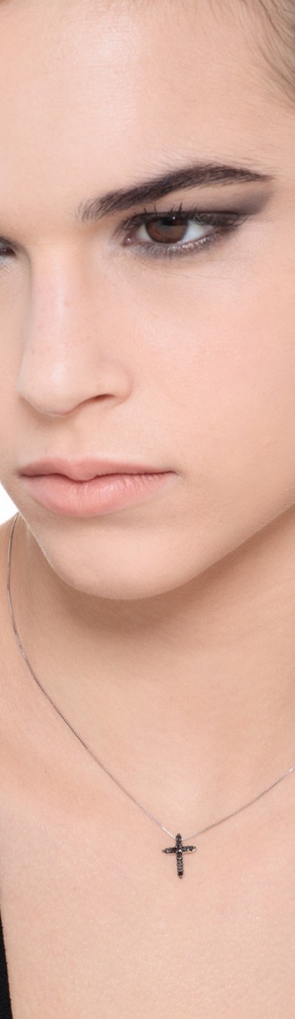 Kreuzkette aus Weißgold mit schwarzen Diamanten