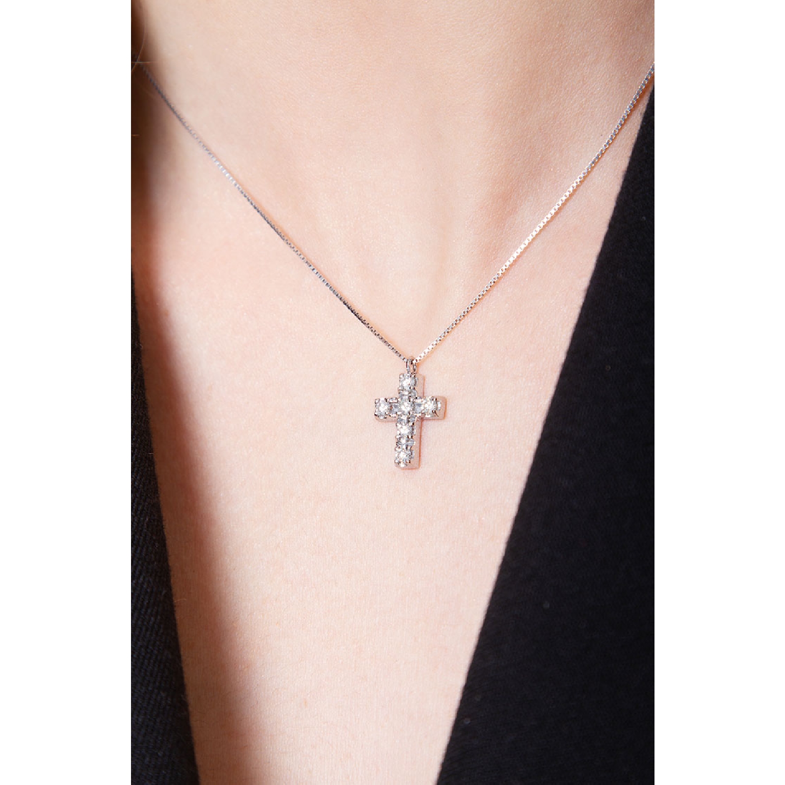 Weißgold 750 Kreuzkette aus Diamanten