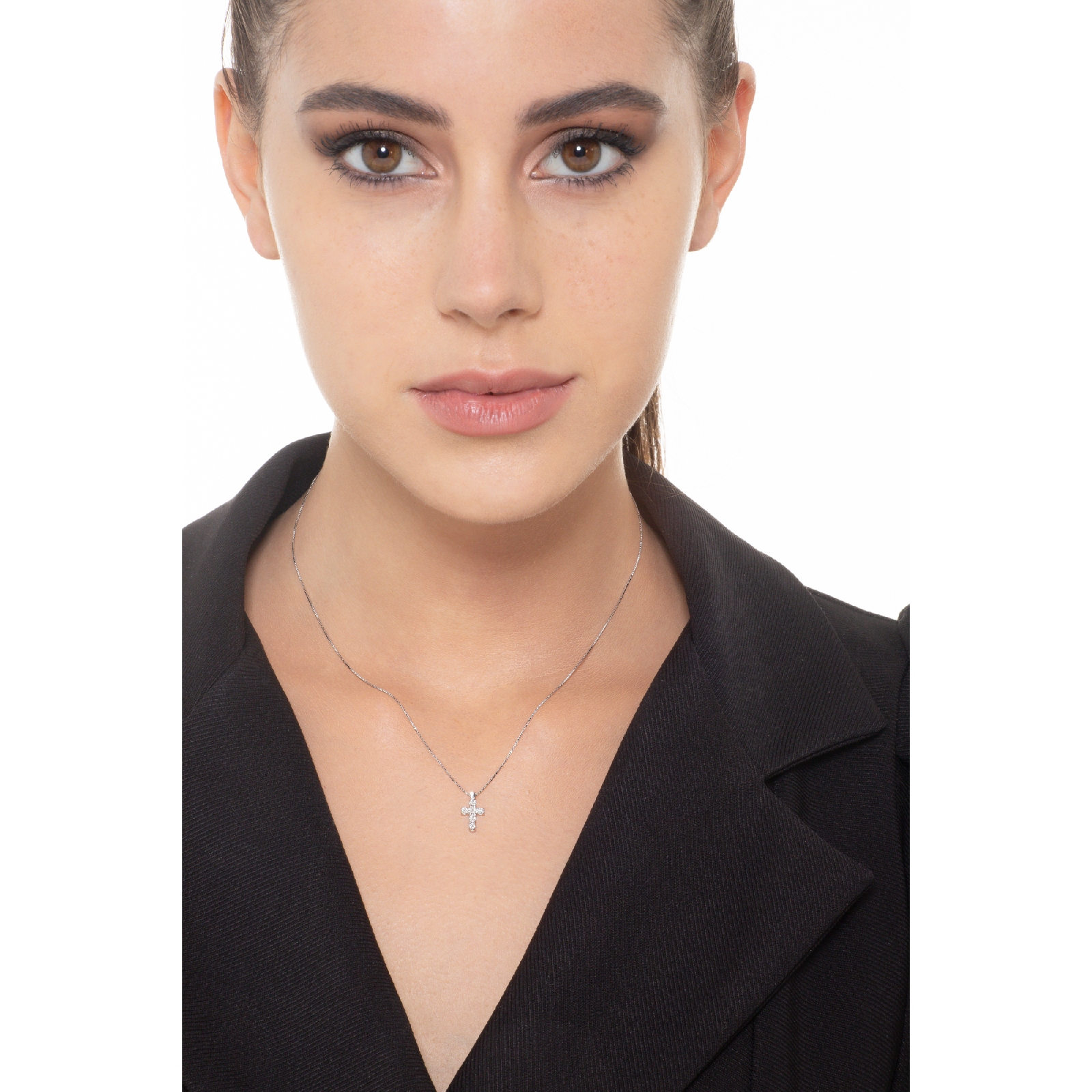 Weißgold Halskette mit kleinem Kreuzanhänger