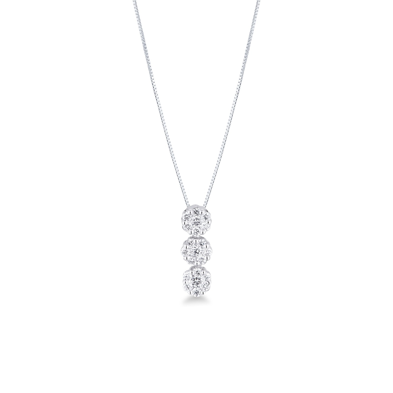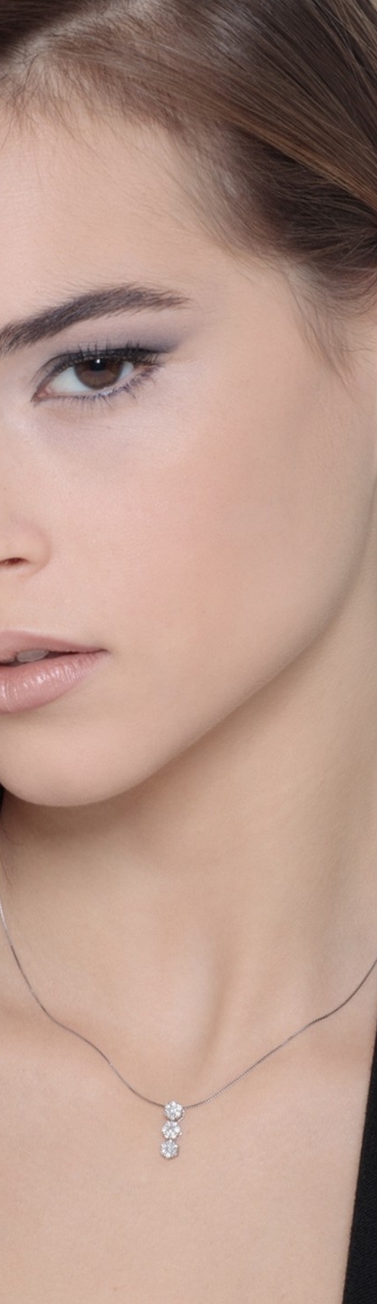 Blumenkette ILLUSION aus Weißgold mit 3 Diamantanhängern