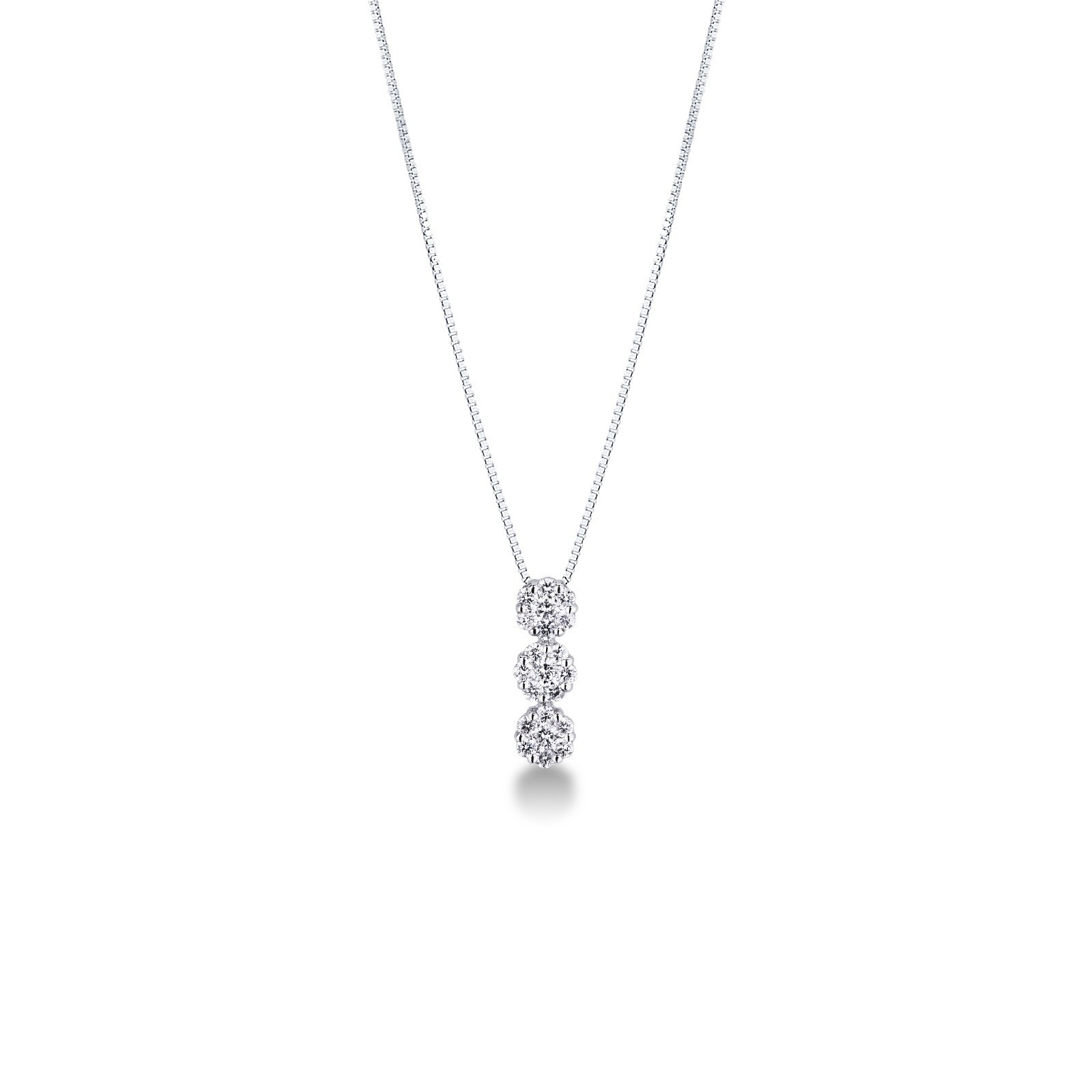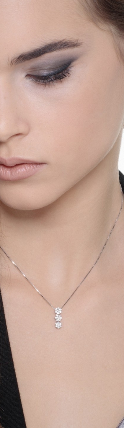 Weißgold ILLUSION Halskette mit 3 Diamantanhängern