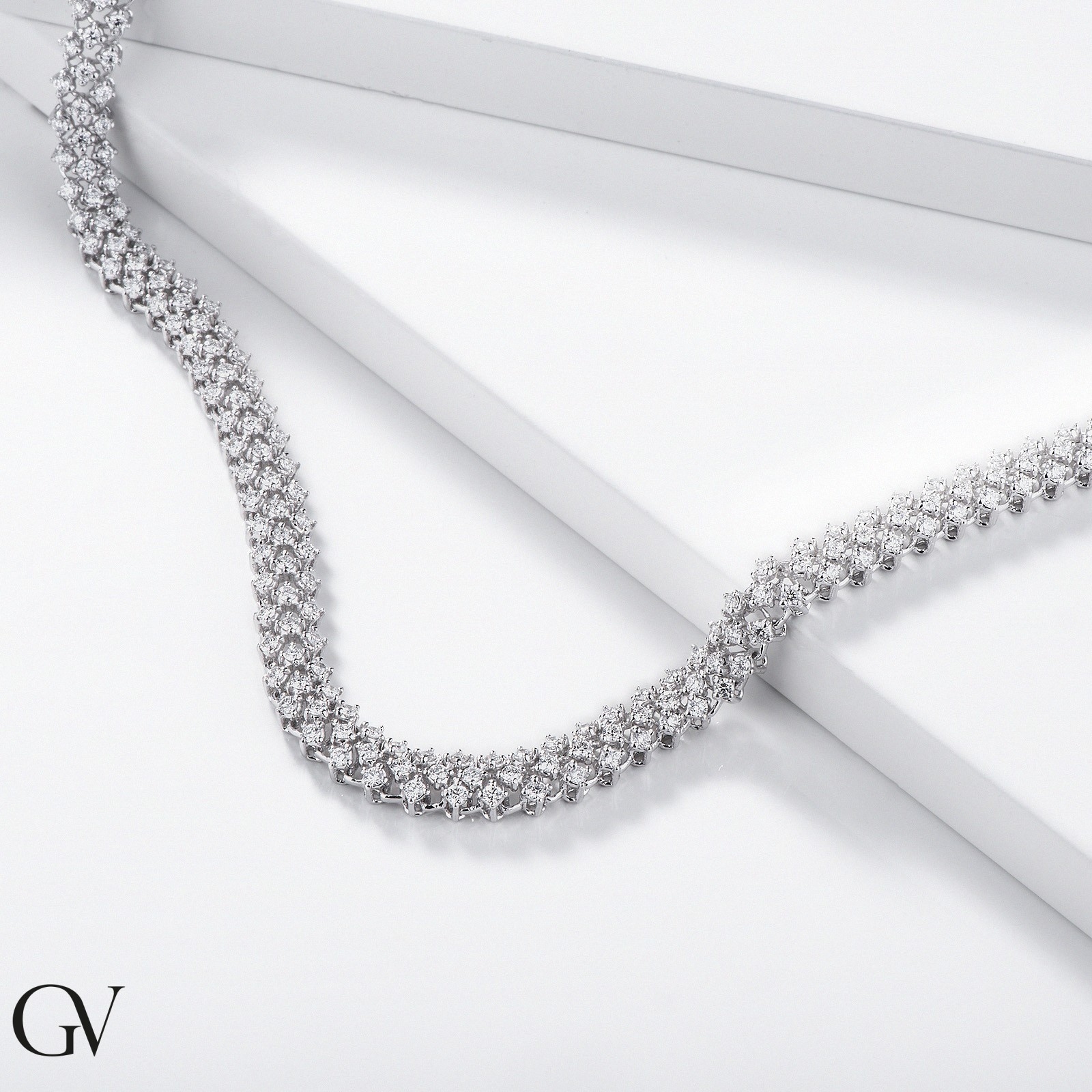 18K Weißgold Designer Tennis Halskette mit Diamanten