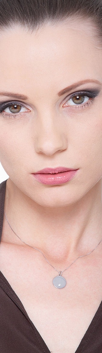 18K Weißgold Kette mit einer gravierbaren Medaille und einem Diamanten