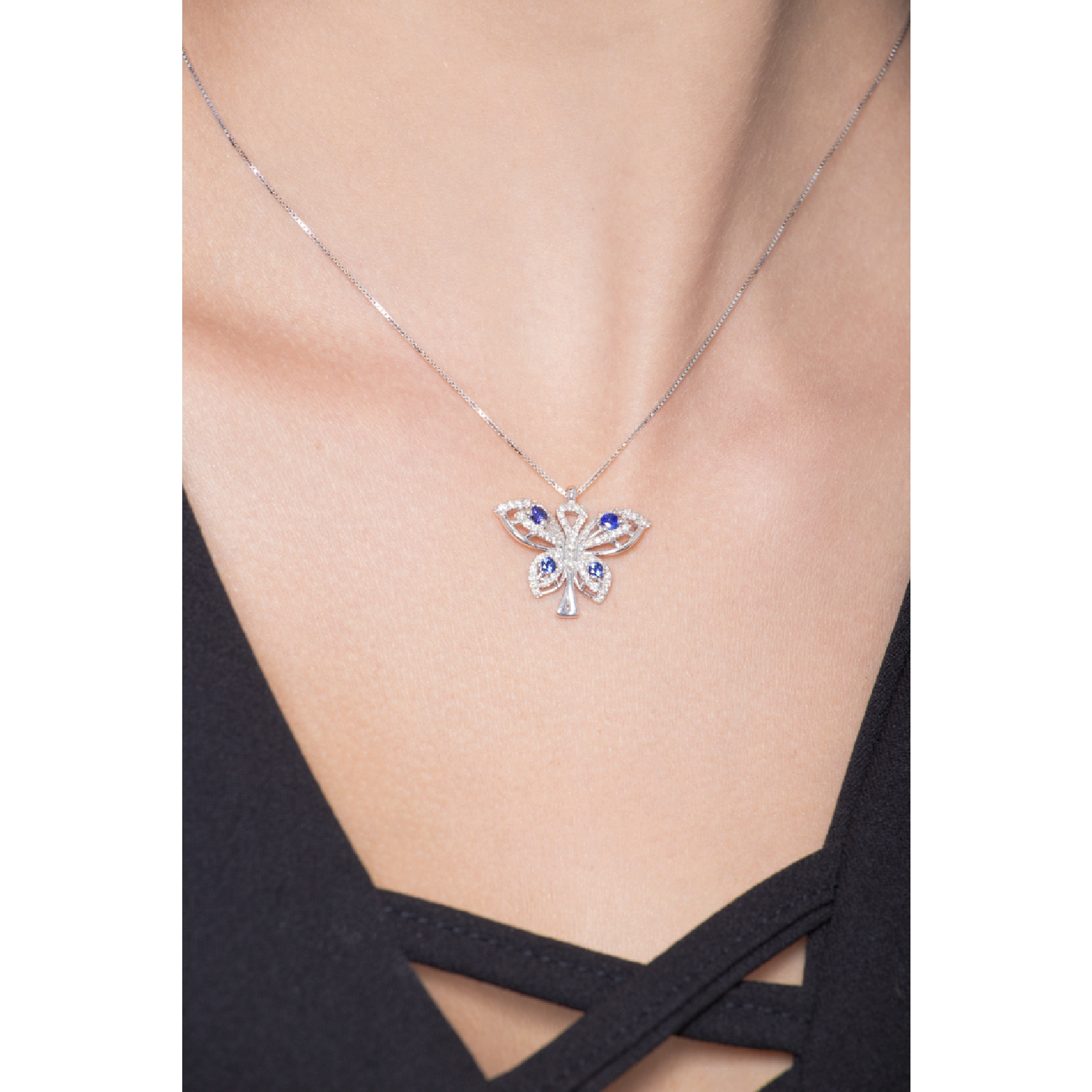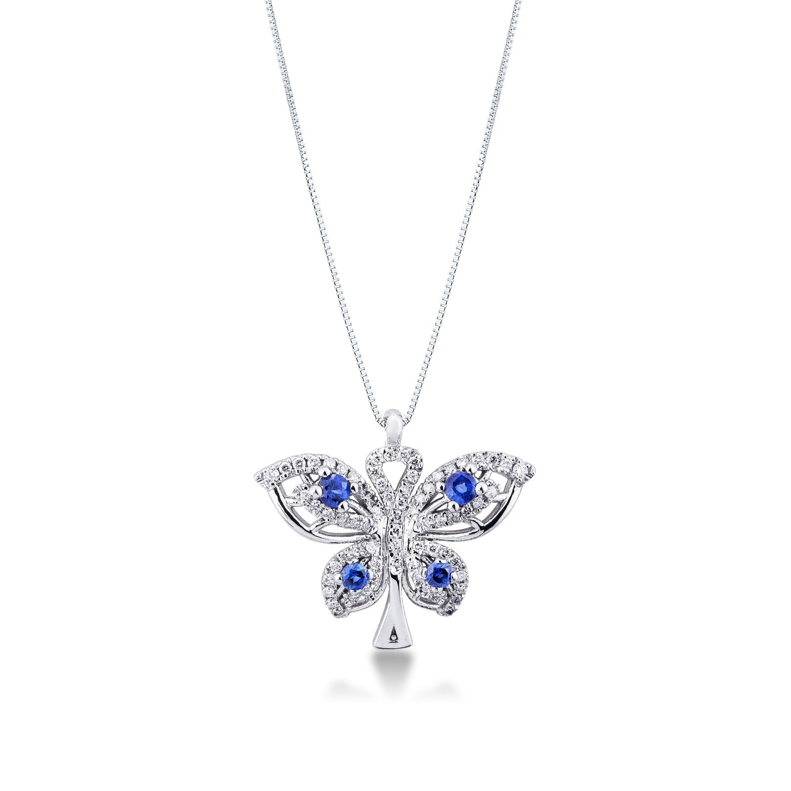 18K Weißgold Schmetterling-Anhänger Saphiren und Diamanten