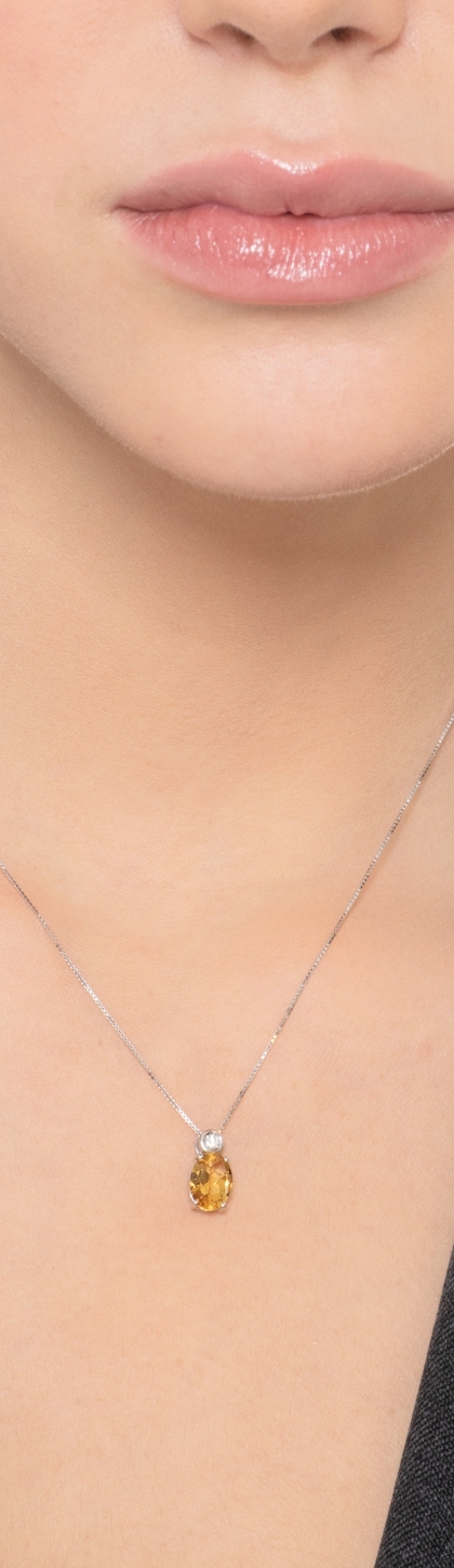 Damen Halskette mit Diamant- und Citrin-Anhänger
