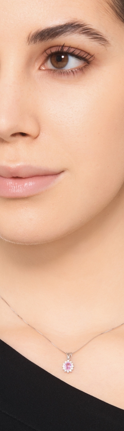 Damenkette mit rosa Saphir-Anhänger mit Diamanten