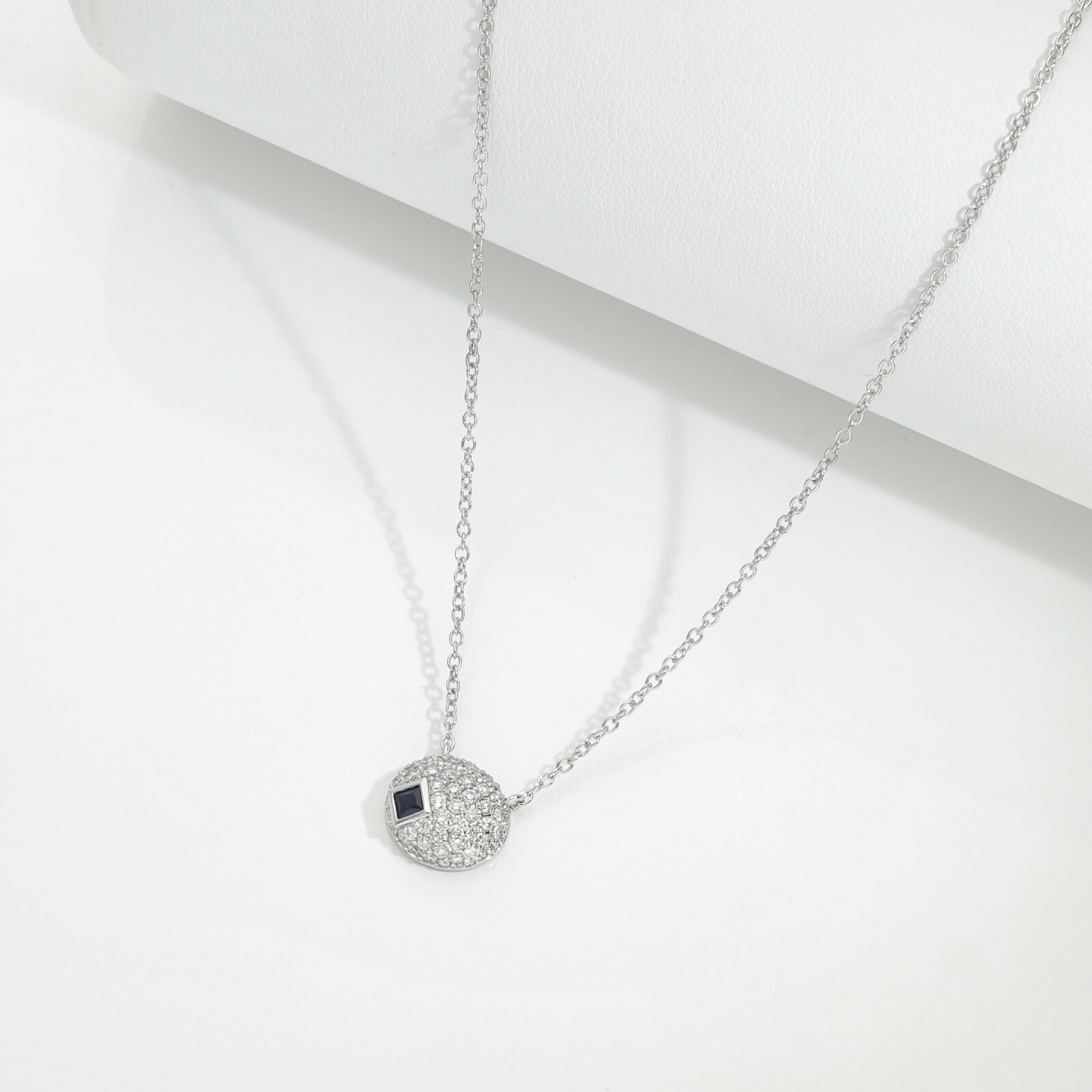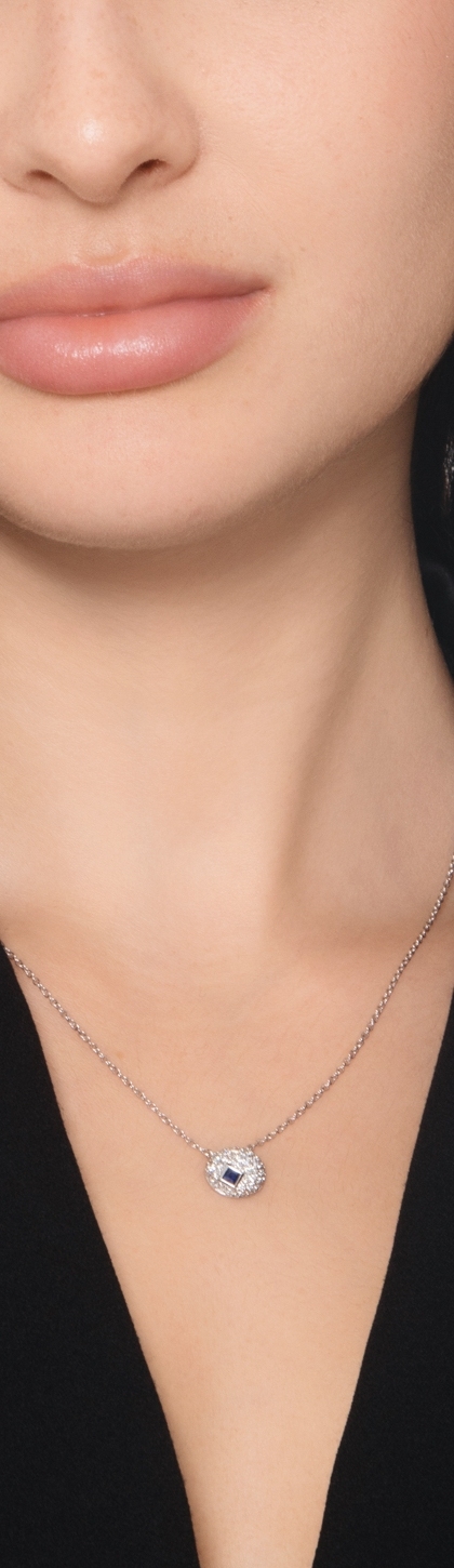 Damenkette Weißgold mit Pavé Anhänger Diamanten Saphir blau