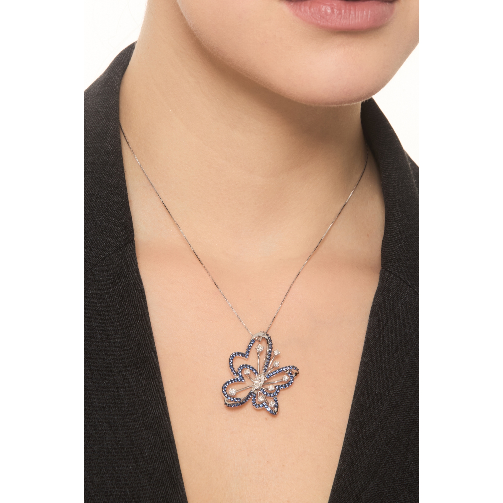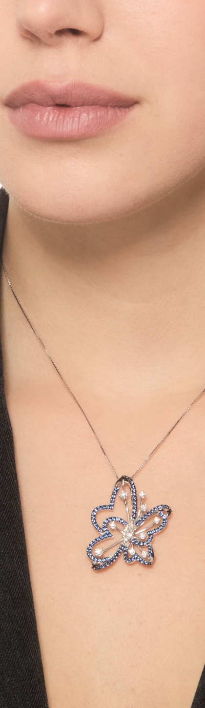 Designer Kette Schmetterling mit Saphiren und Diamanten