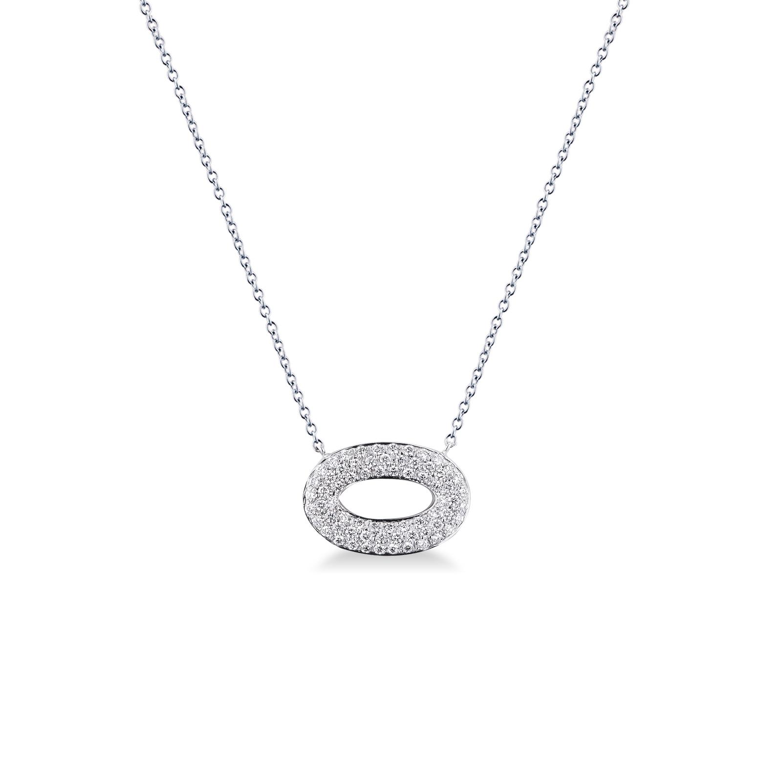 Diamant Kette mit Ovalem Anhänger Weißgold
