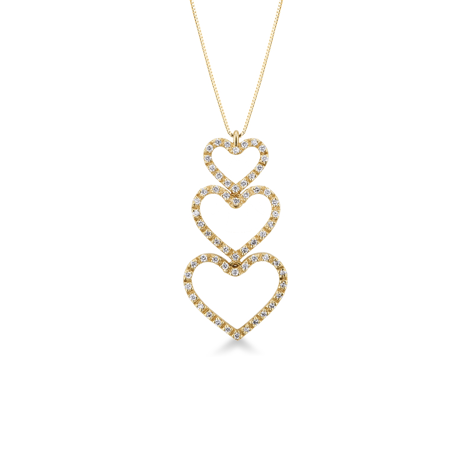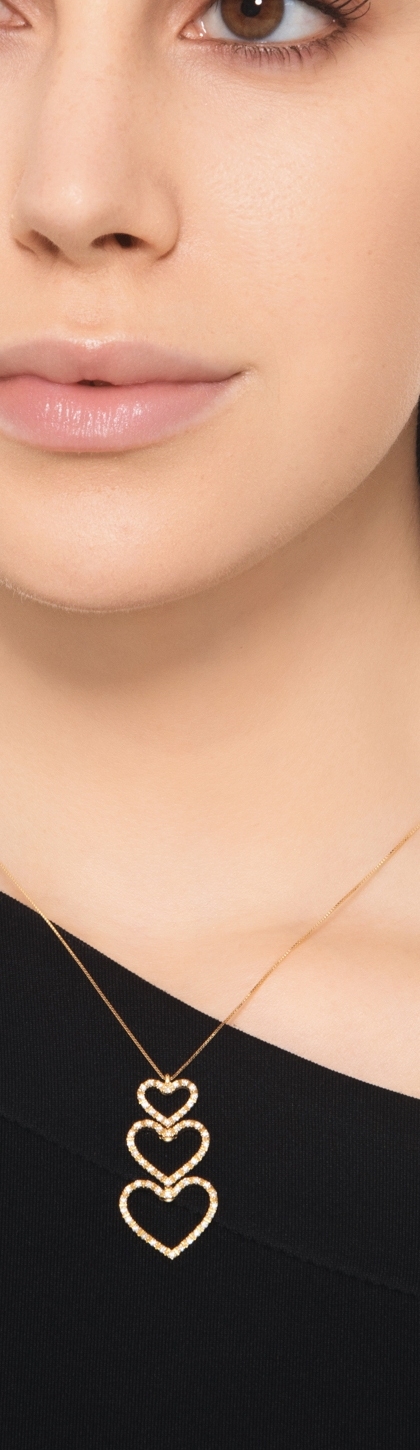 Gelbgold 18K Kette mit drei Herzen aus Brillanten