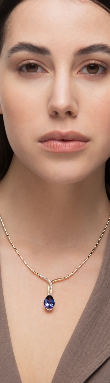 Gelbgold 750 Damenkette Saphir und Diamanten
