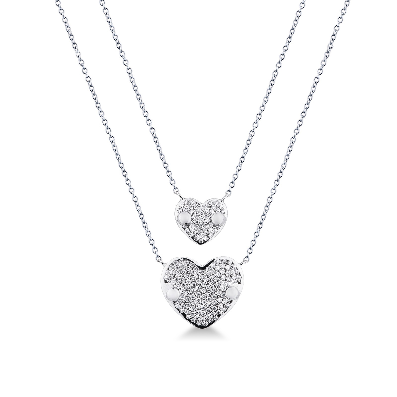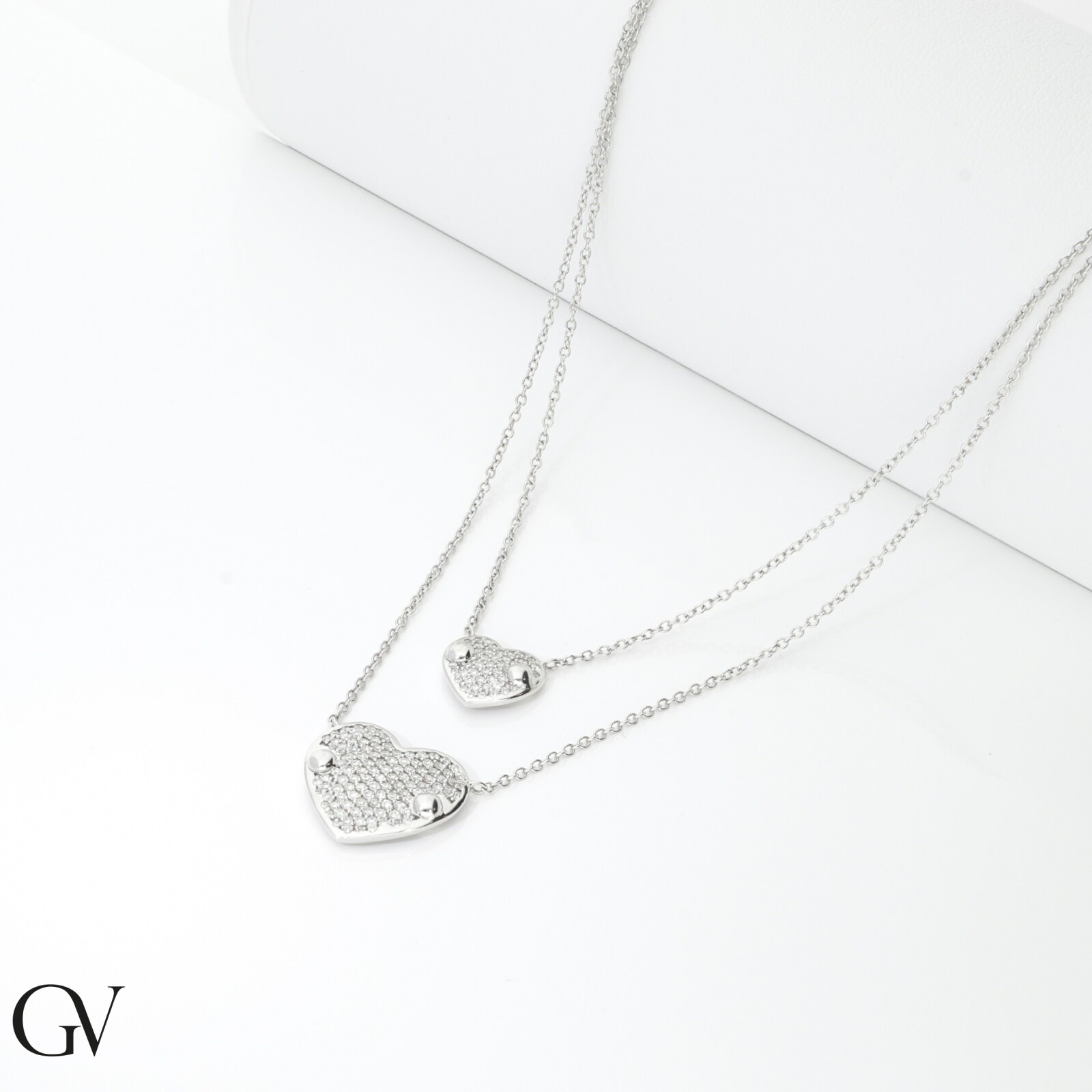 Halskette Doppelkette Weißgold mit Herzen aus Brillanten