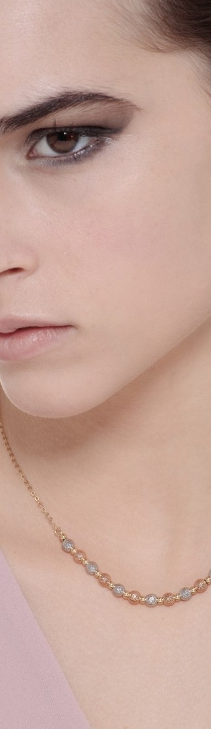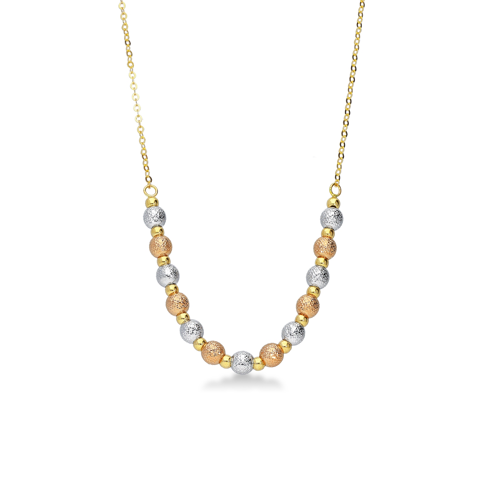 Halskette Gelbgold mit dreifarbigen Kugeln