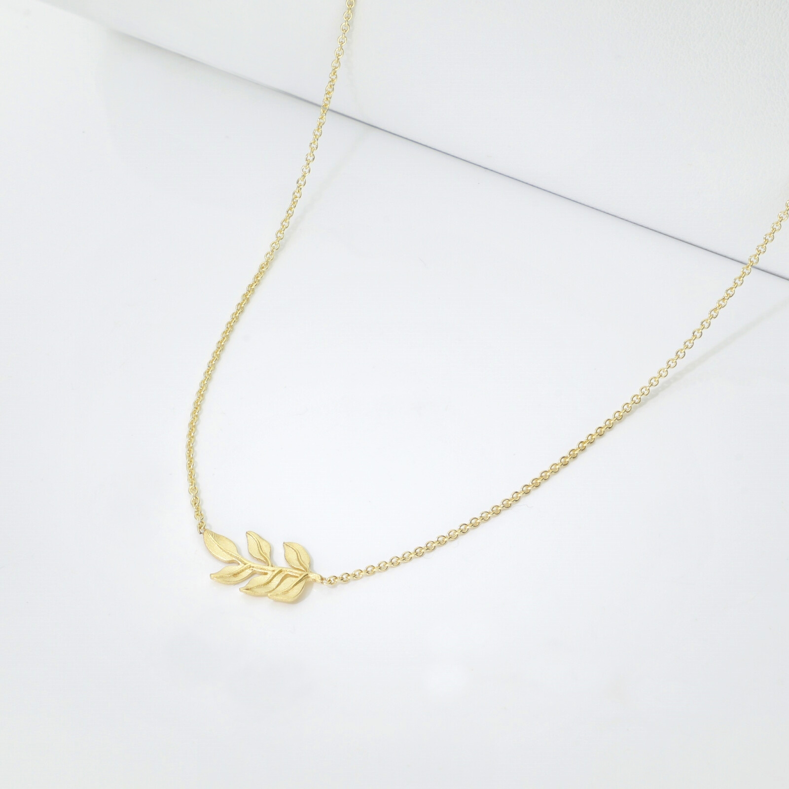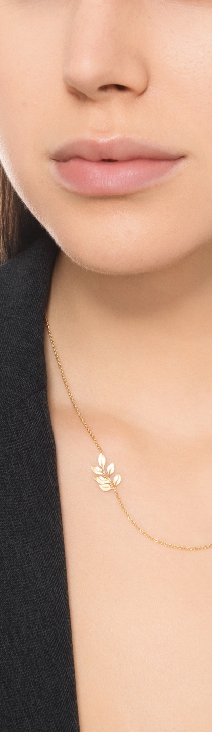Halskette mit glänzendem Blatt aus 750er Gelbgold