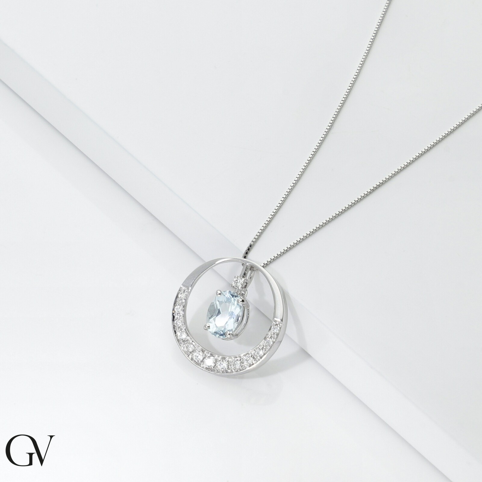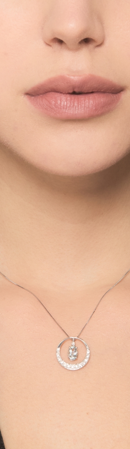 Halskette Weißgold mit Kreisanhänger aus Aquamarin und Diamanten