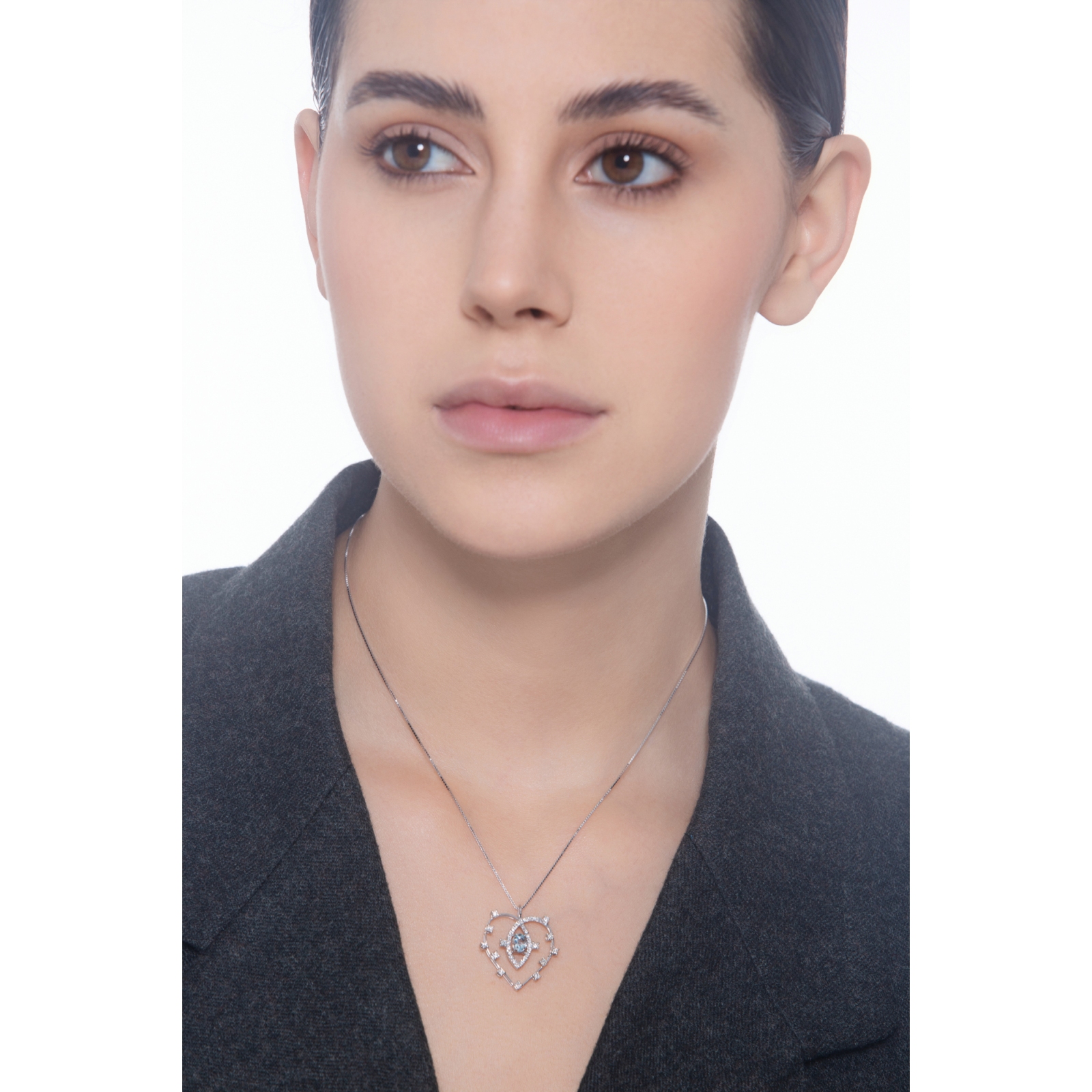 Herzkette 18K Weißgold mit Aquamarin-Anhänger und Diamanten