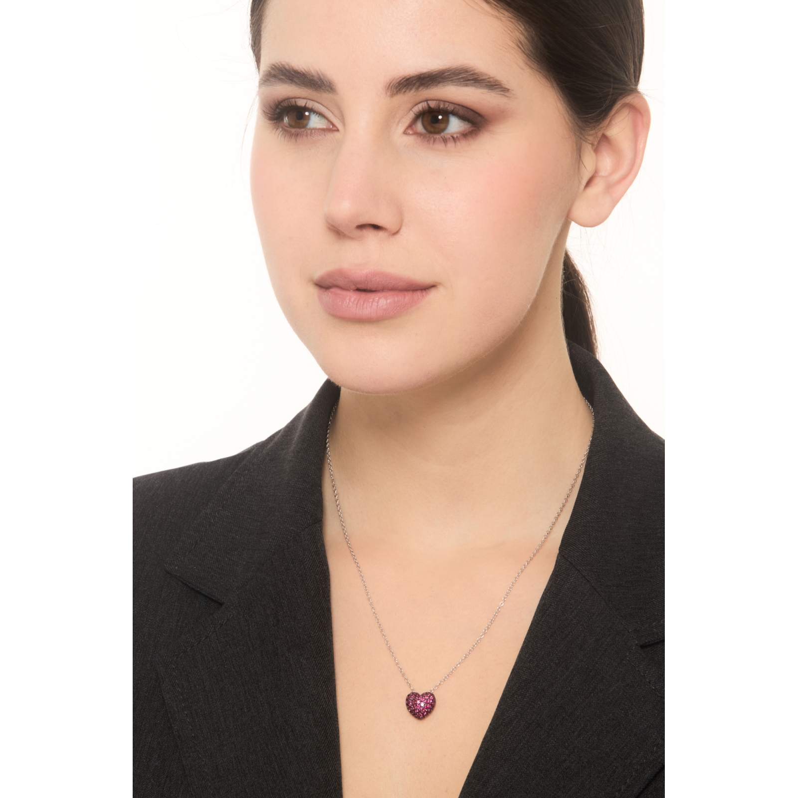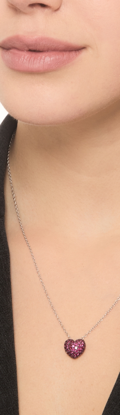 Herzkette mit Rubinen aus Weißgold 18K