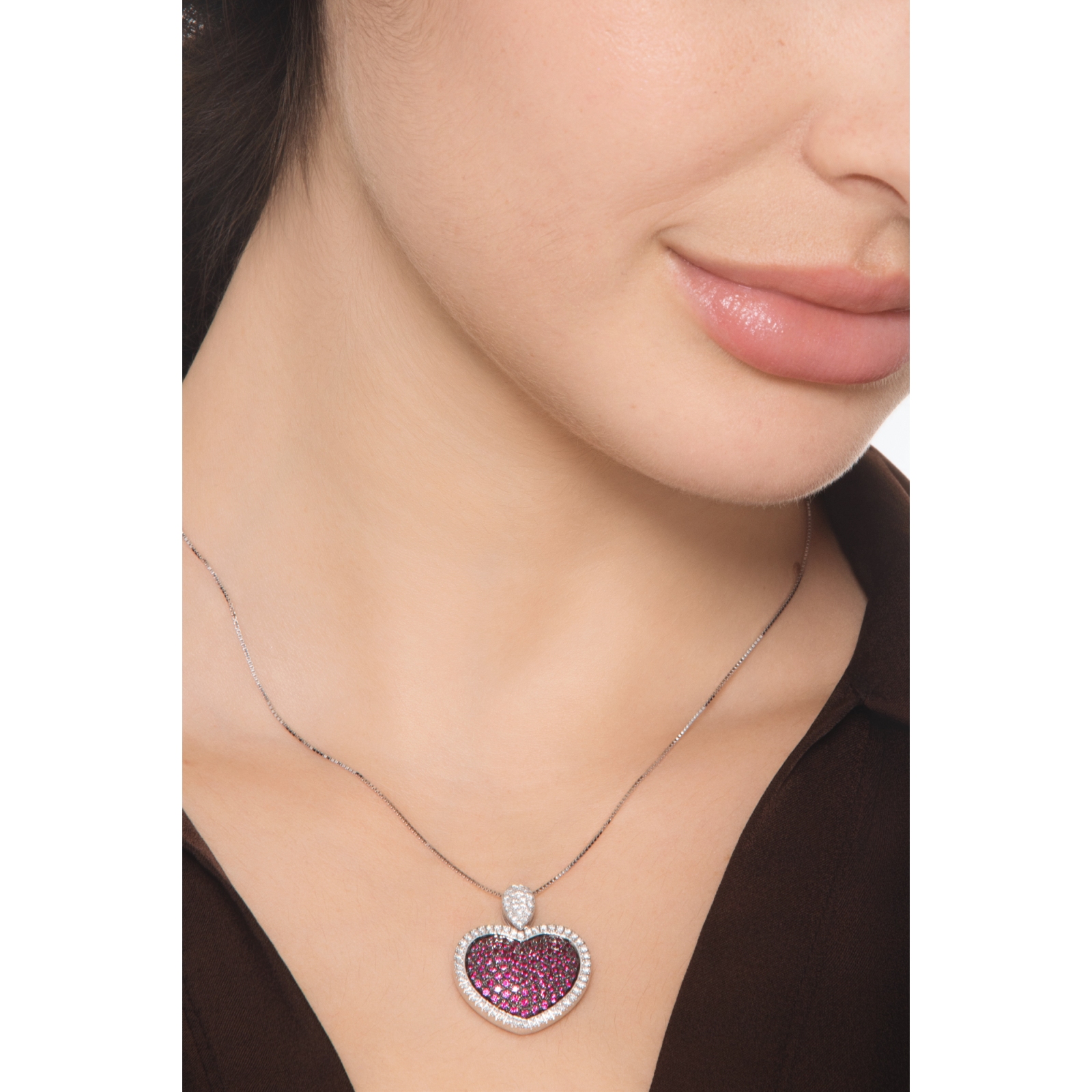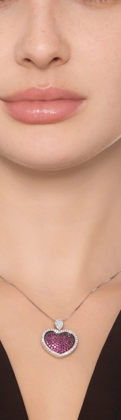 Herzkette Weißgold 18k mit Rubinen und Diamanten