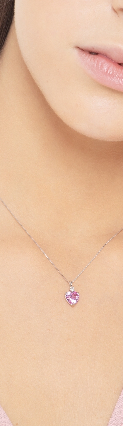 Herzkette Weißgold mit rosa Saphir und Diamant