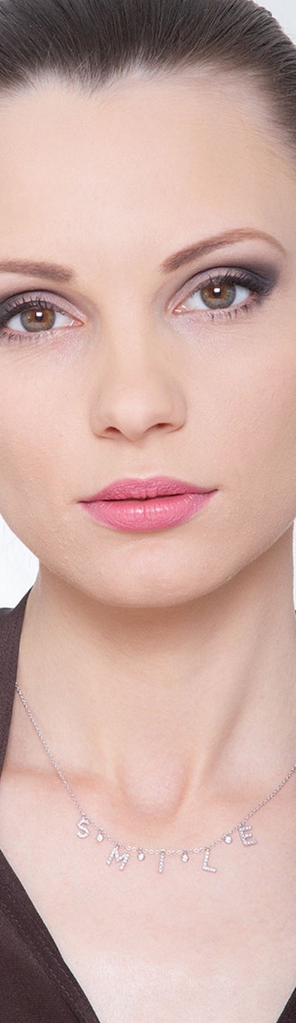 Kette aus Weißgold mit Schriftzug SMILE aus Diamanten
