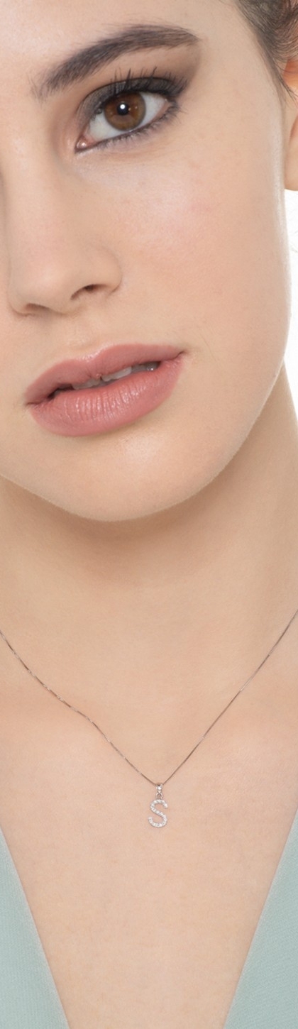 Kette mit Buchstabe S aus Weißgold und Diamanten