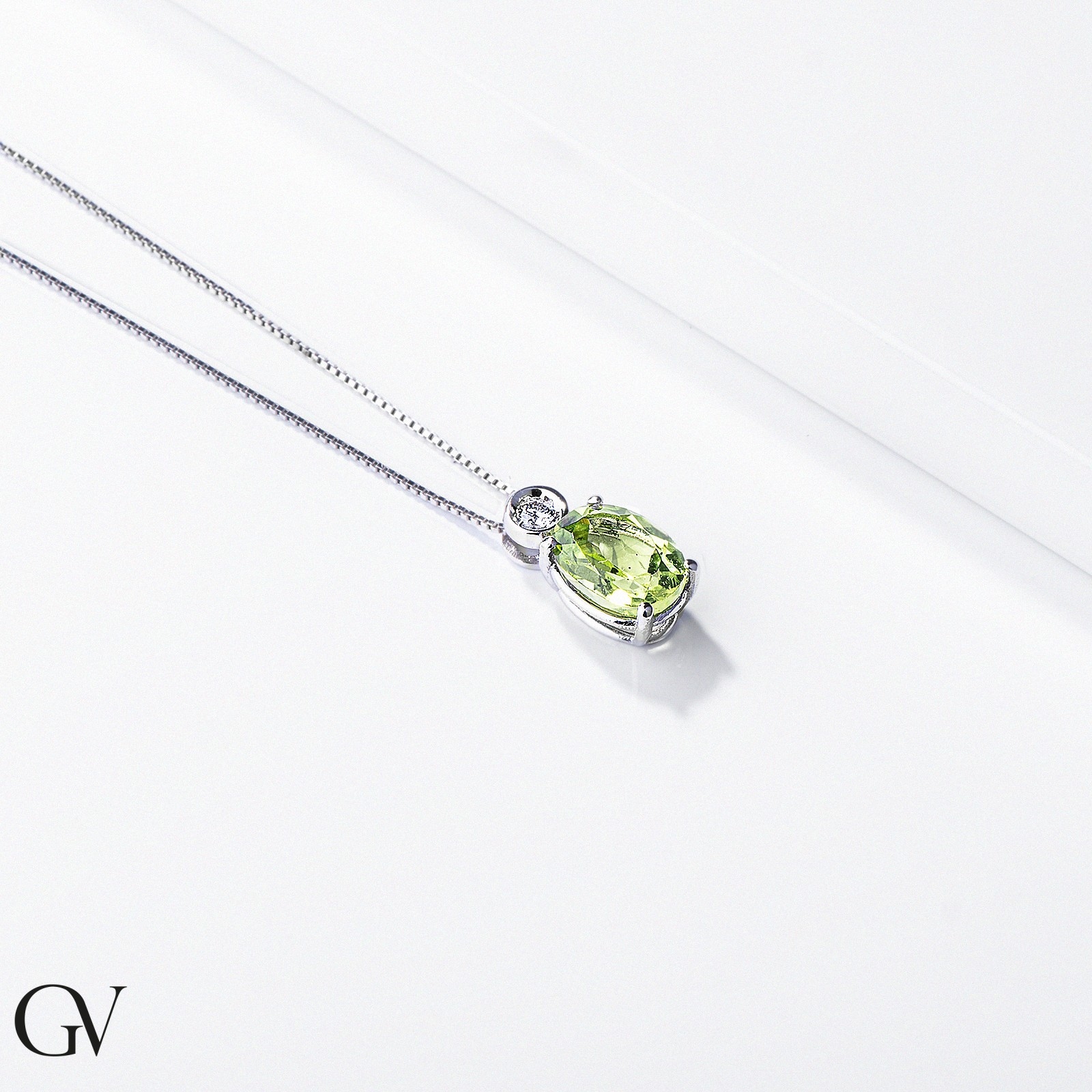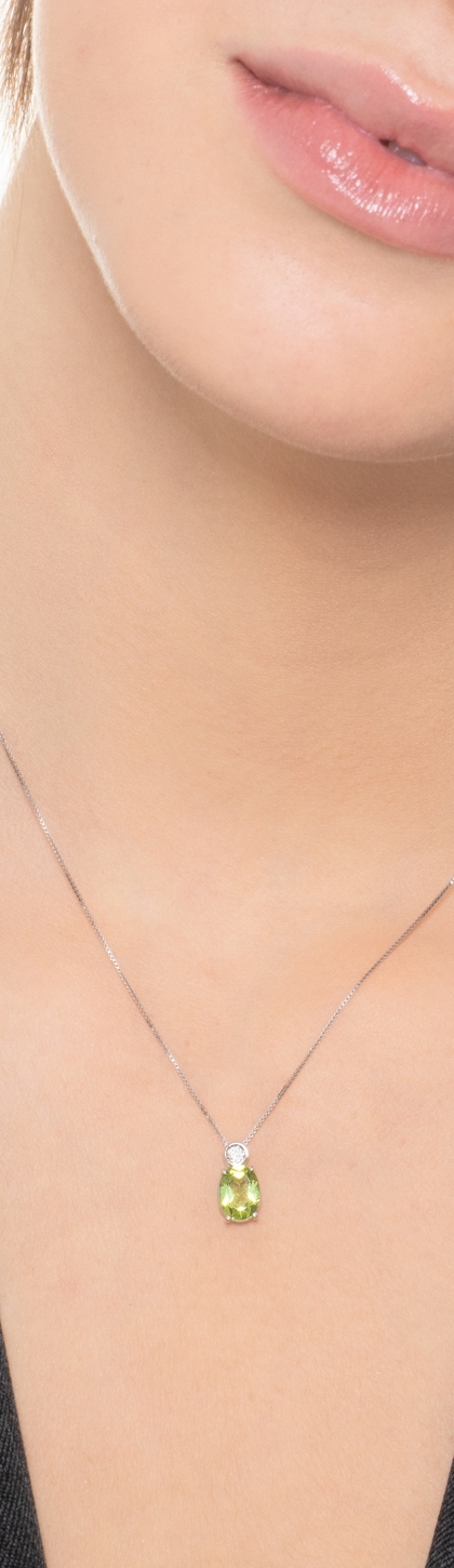 Solitär-Kette aus 18k Weißgold mit Peridot-Anhänger
