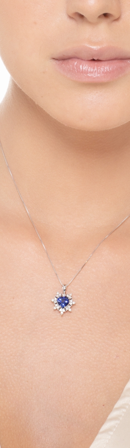 Weißgold 18k Herzkette mit blauem Saphir und Diamanten