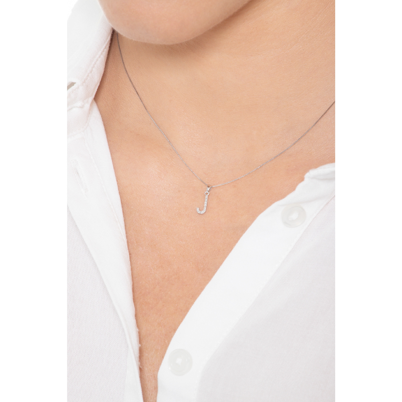 Weißgold 750 Kette mit Buchstabe J aus Diamanten