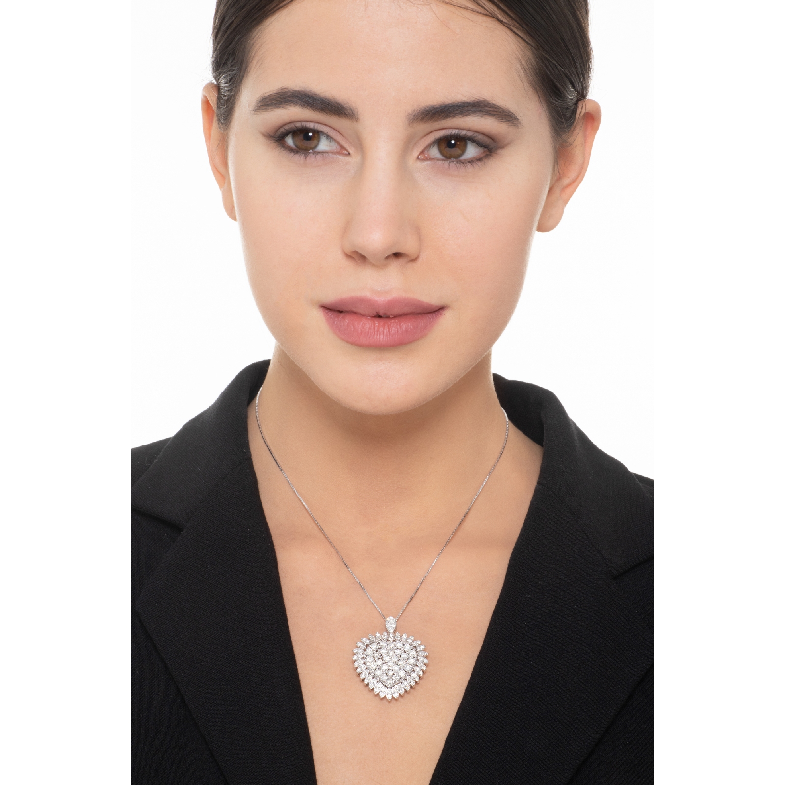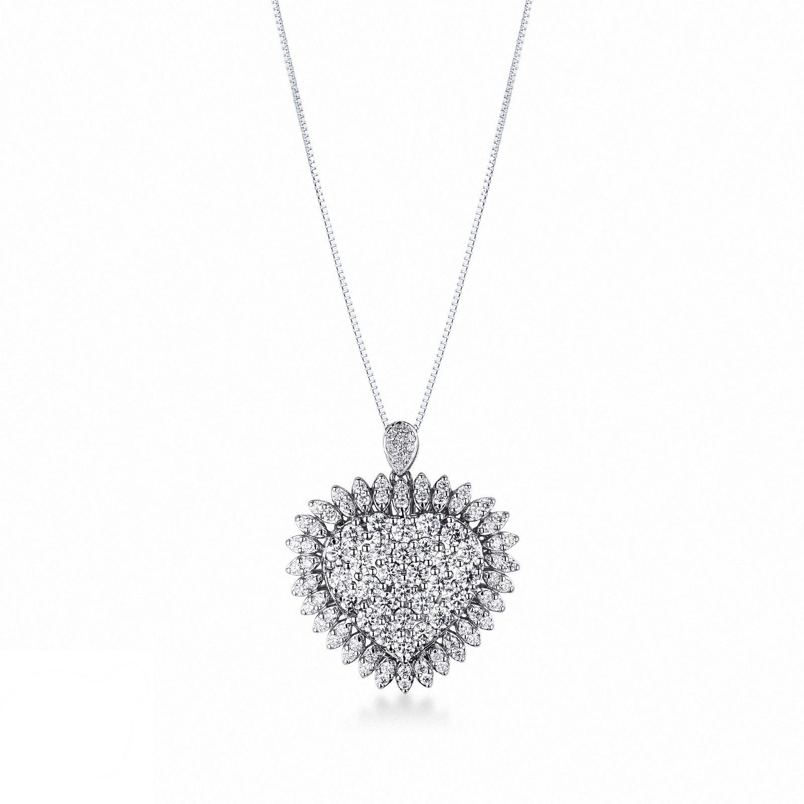 Weißgold Damenkette mit Diamant-Herz-Anhänger