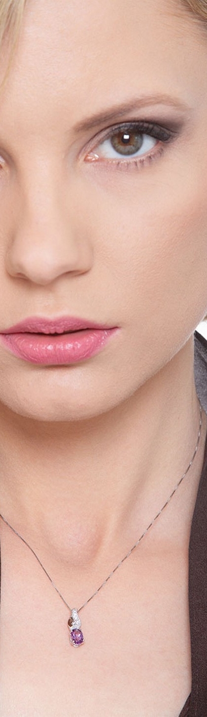 Weißgold Kette mit Amethyst Anhänger und Diamanten