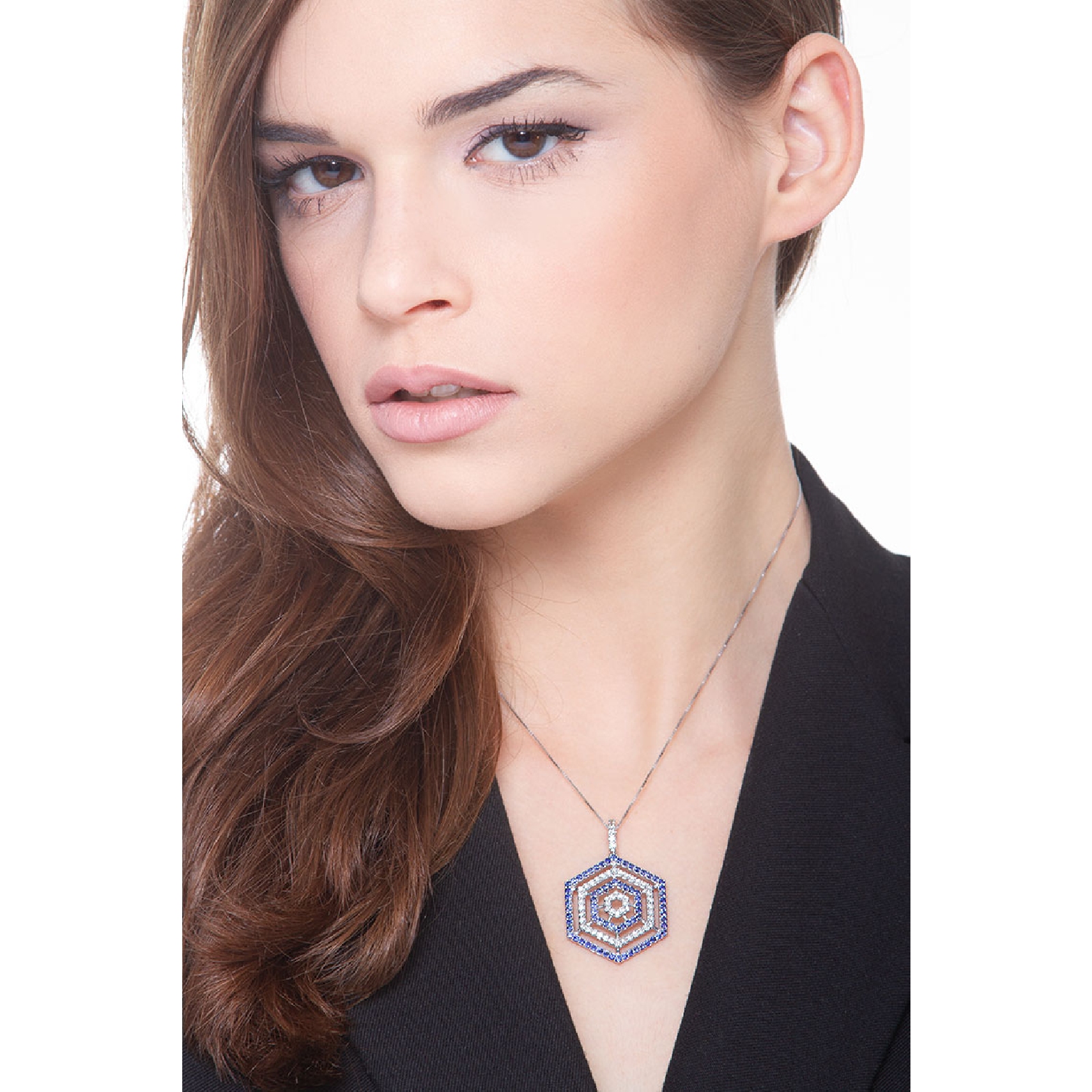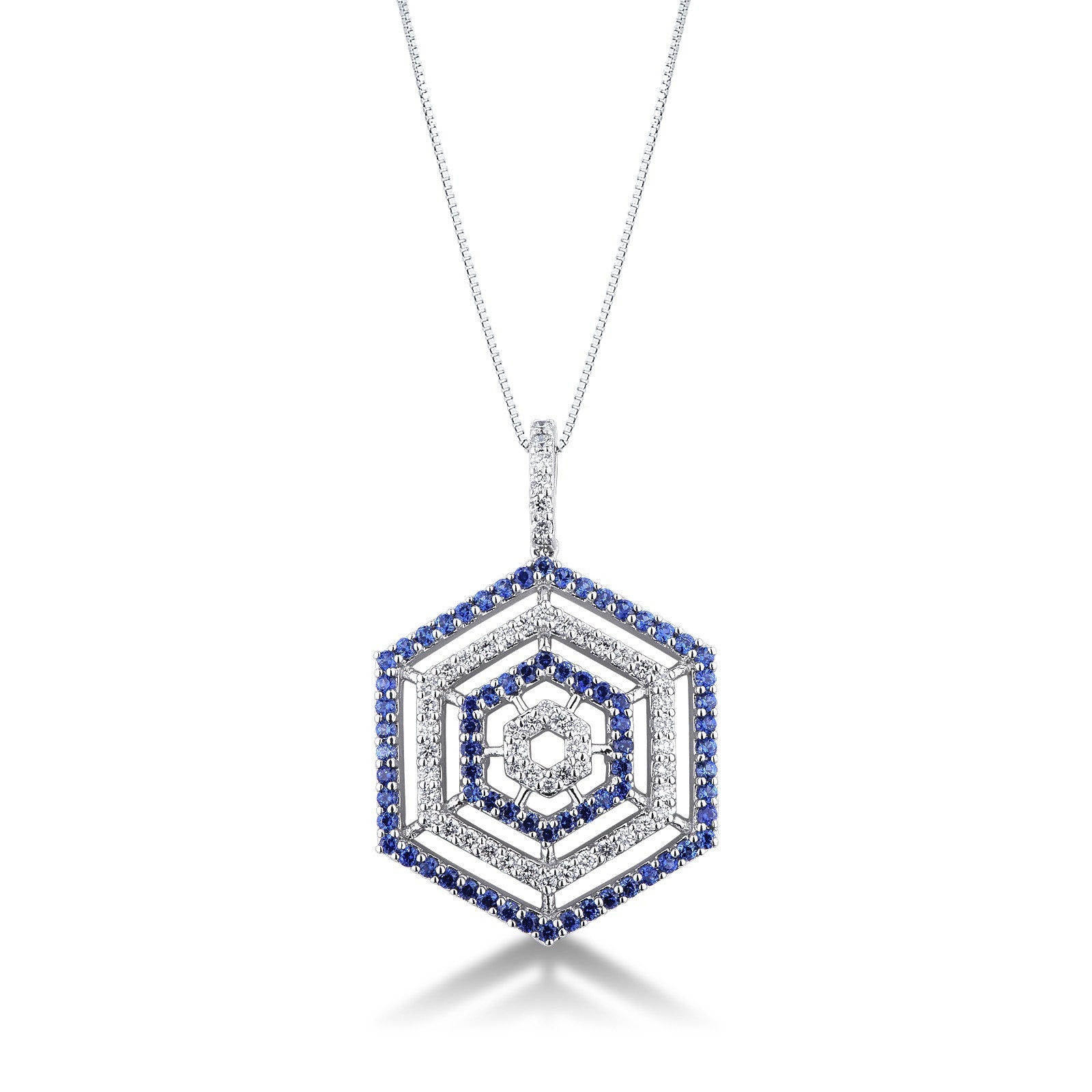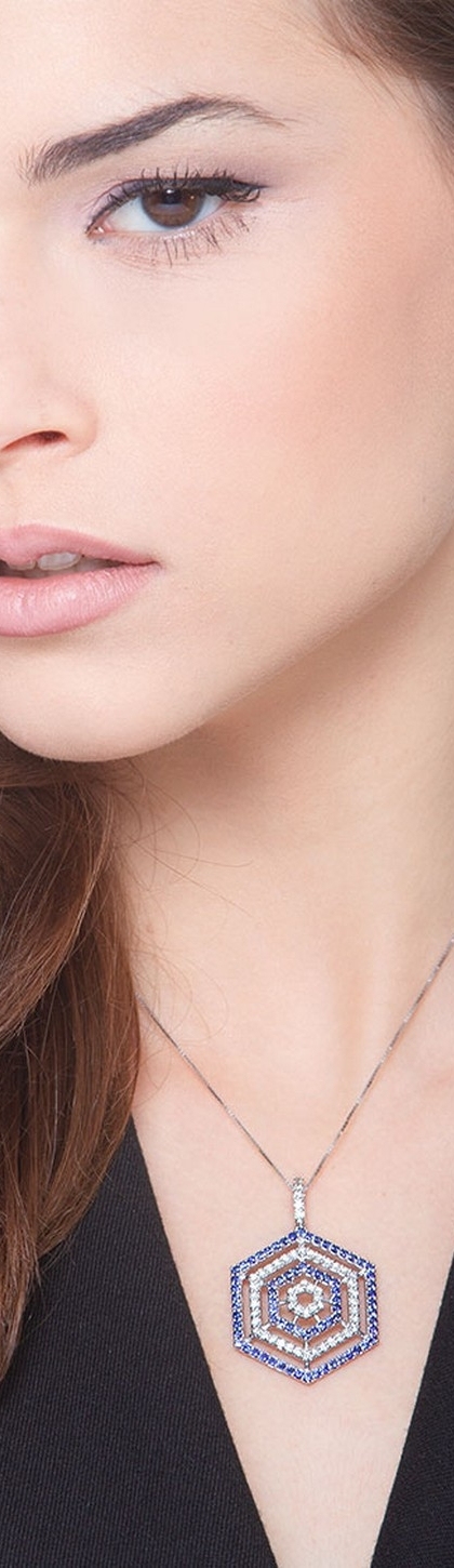 Weißgold Kette mit blauen Saphiren und Brillanten