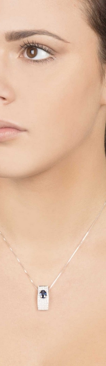Weißgold Kette mit Pavé aus Diamanten und blauem Saphir