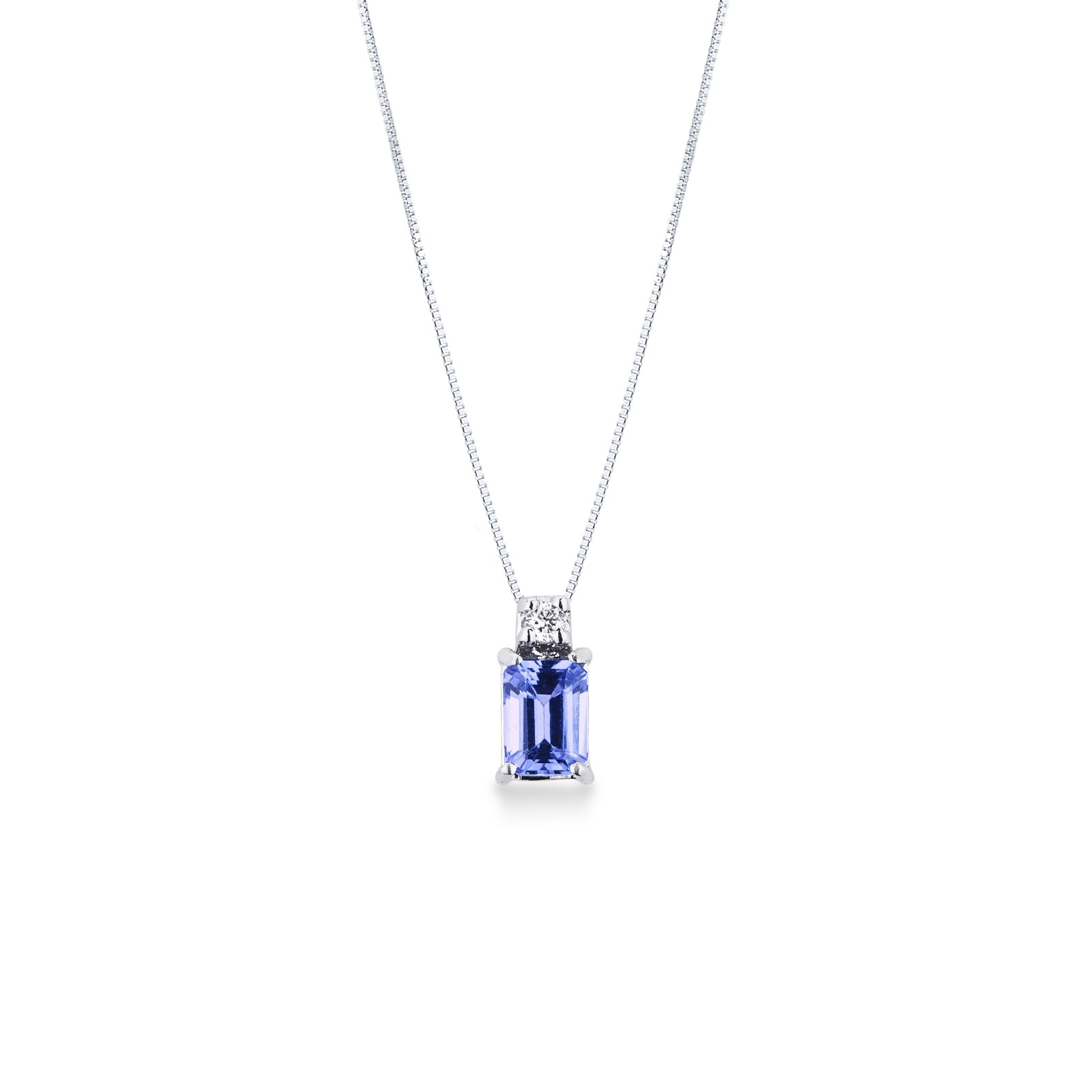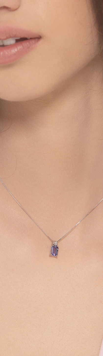 Weißgold-Kette mit Tansanit-Anhänger und Diamanten