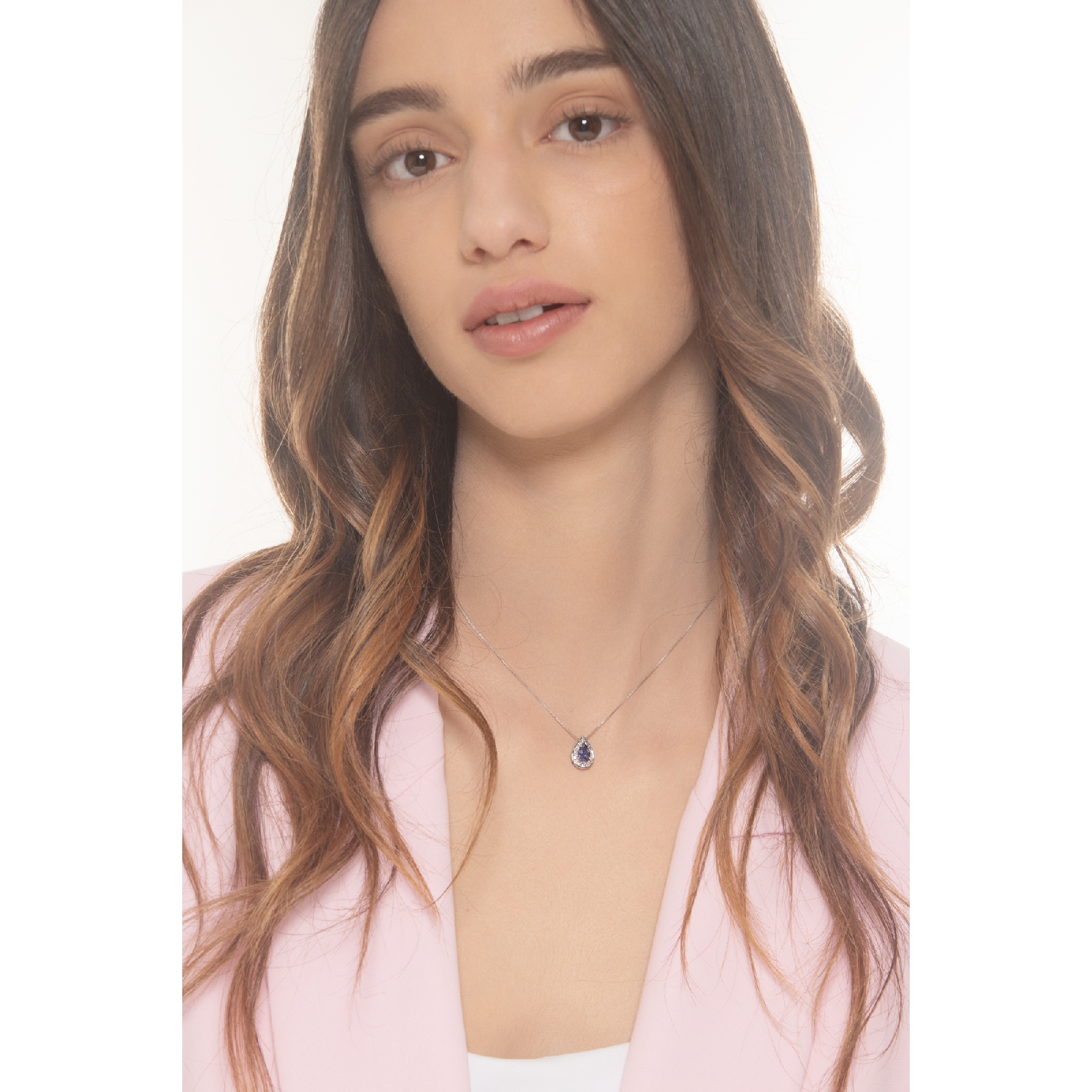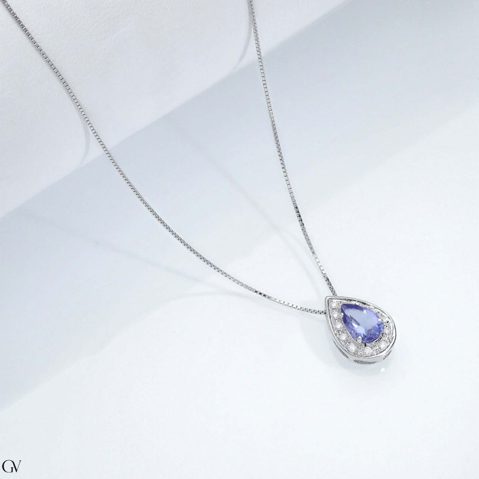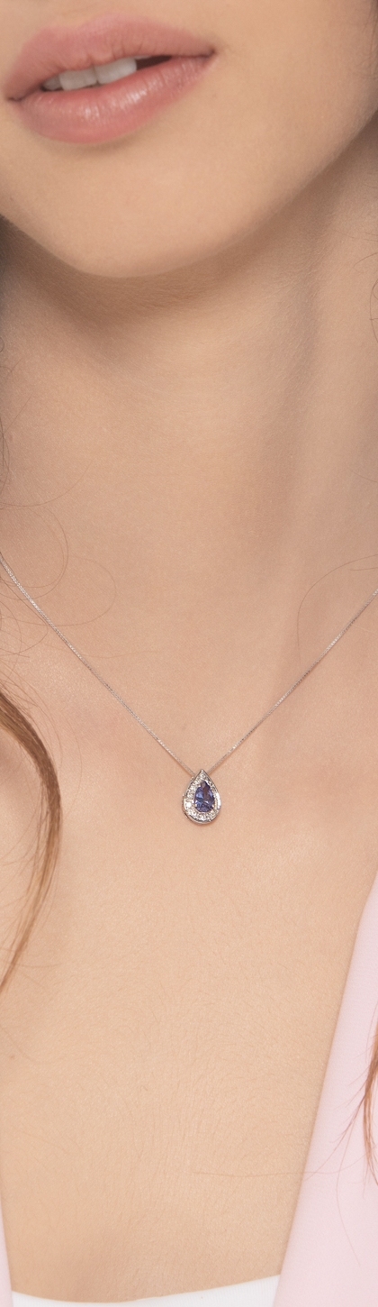 Weißgold-Kette mit Tansanit-Tropfen-Anhänger und Diamanten