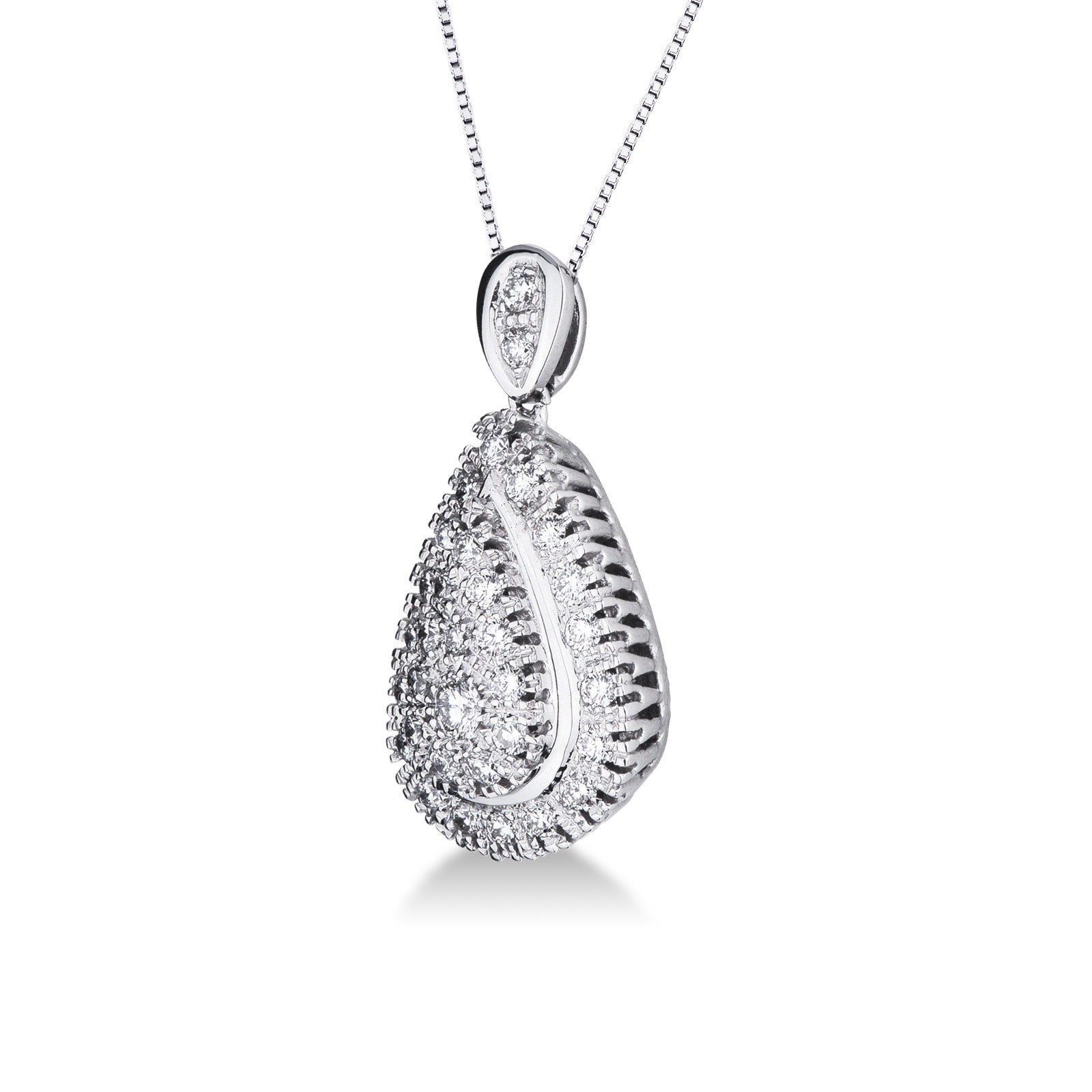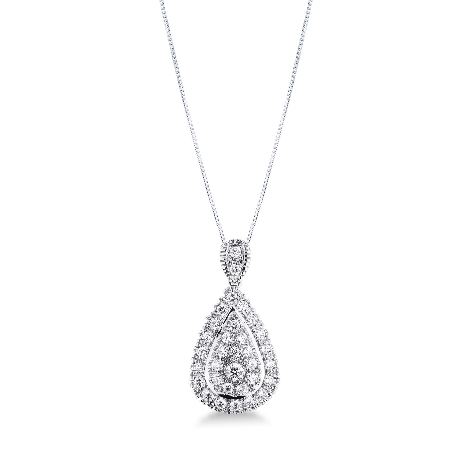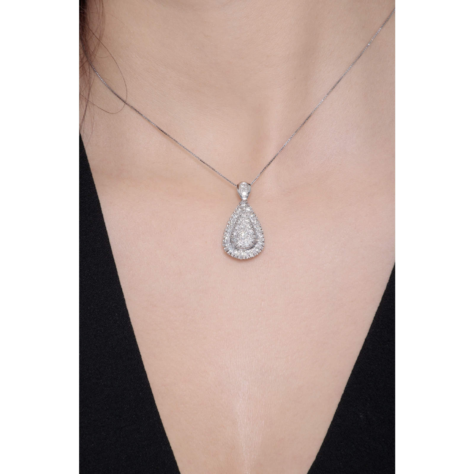 Weißgoldkette mit Tropfenanhänger aus Diamanten